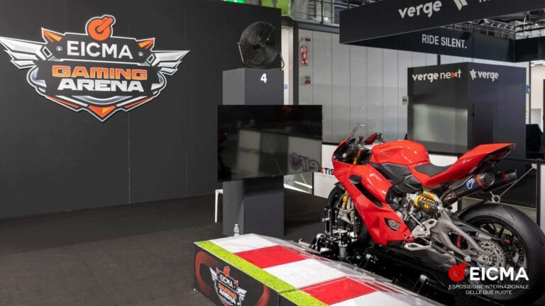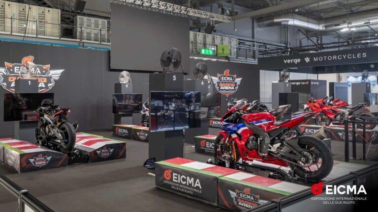 Thanks to ultra-realistic simulators, visitors could ride real production bikes and experience a race on the legendary Misano Adriatico circuit. Every day over 30 competitions awaited them, with seven bikes on the grid: only the fastest made it to the podium to win the exclusive prizes of the EICMA Gaming Arena.