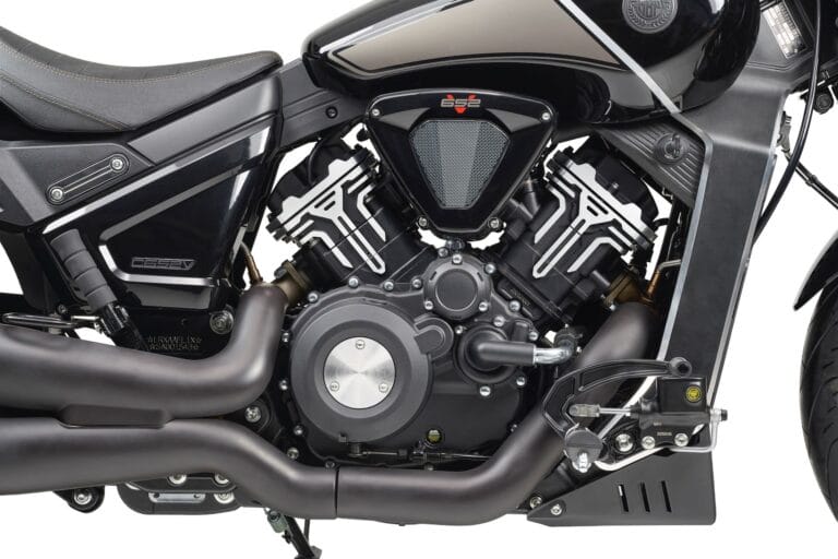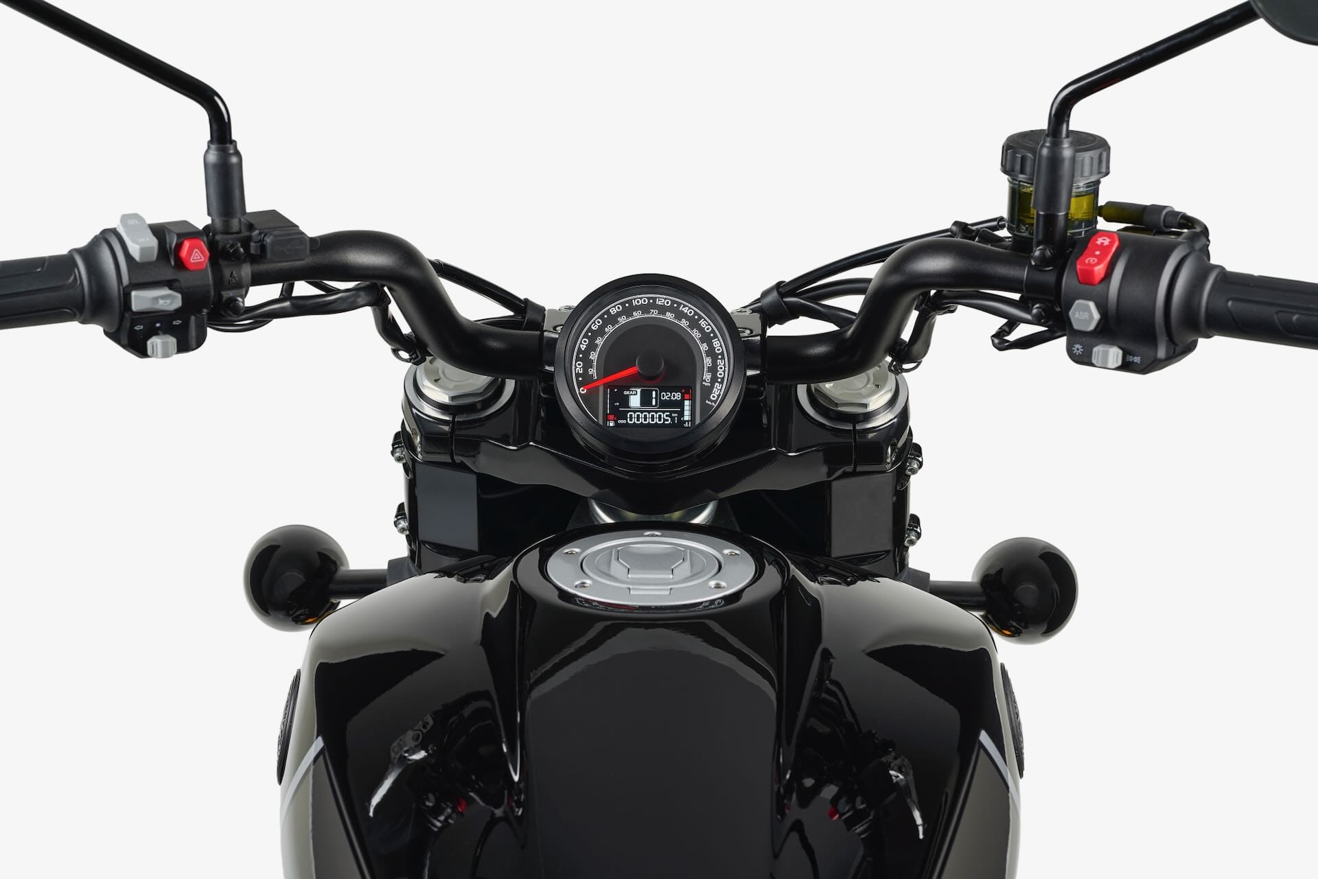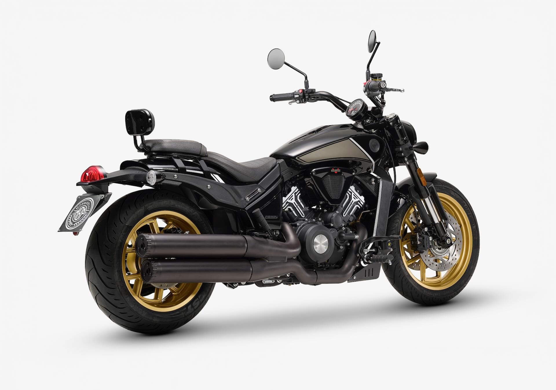 A EICMA 2025 c’è molto fermento nel segmento custom. Nella mischia si butta anche Morbidelli con la nuova C652V, che sarà in vendita nei primi mesi del 2026. La moto è una power cruiser media che abbina una sagoma classica a fari a LED e a una componentistica moderna. Accanto al serbatoio da 18,5 litri e alla sella passeggero amovibile spicca un bicilindrico a V da 650 cc accreditato di 55,7 CV e di 62 Nm. Il reparto trasmissione sfrutta un cambio a sei marce, una frizione antisaltellamento e una finale a cinghia dentata. Il telaio a doppia culla in acciaio è privo di punti di saldatura e pone la sella a soli 710 mm dal suolo. Altro elemento caratterizzate di questa Morbidelli è la generosa gommatura. Il pneumatico anteriore è un 130/70R18 mentre dietro c’è un paffuto 200/55R16. Solidi appaiono pure i comparti sospensioni e i freni, con una forcella a steli rovesciati da 43 mm, un mono con leveraggi progressivi e un doppio disco anteriore da 300 mm. La dotazione tecnologica della C652V prevede controllo di trazione TCS e due riding mode, Standard e Sport. Il pannello strumenti integra uno schermo digitale centrale all'interno di un contagiri analogico.