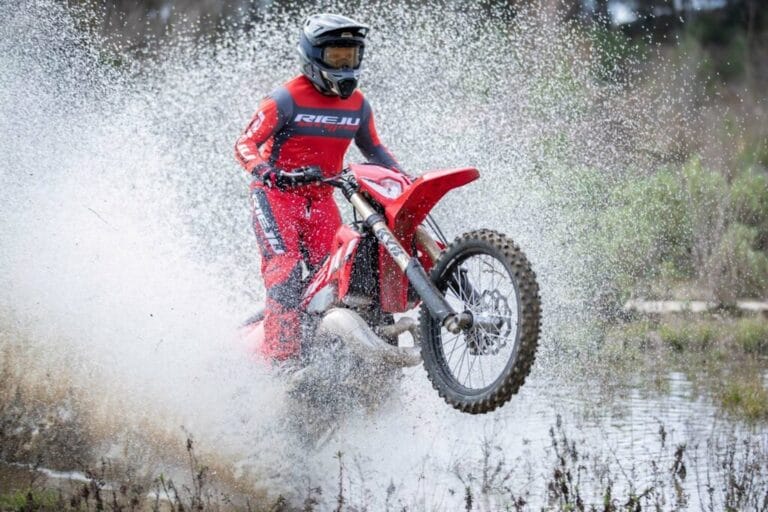 Dopo aver presentato il motore monocilindrico 2T da 300 cc con iniezione elettronica, valvola di scarico elettronica e un nuovo TFI a EICMA 2024, Rieju porta al Salone di quest'anno la versione assemblata della MR300i, disponibile nelle varianti Racing (102,6 kg) e Pro (103,5 kg e componentistica premium). Al motore, che incorpora un albero di bilanciamento controrotante e dispone di tre mappe di potenza selezionabili (Race, Forest e Wet), si aggiungono una nuova frizione a tazza, il telaio centrale in acciaio al cromo-molibdeno con sottotelaio in alluminio, la forcella rovesciata KYB da 48 mm con sistema AOS (Air-Oil Separated) e cartuccia chiusa e il monoammortizzatore KYB completamente regolabile in precarico, escursione e compressione.