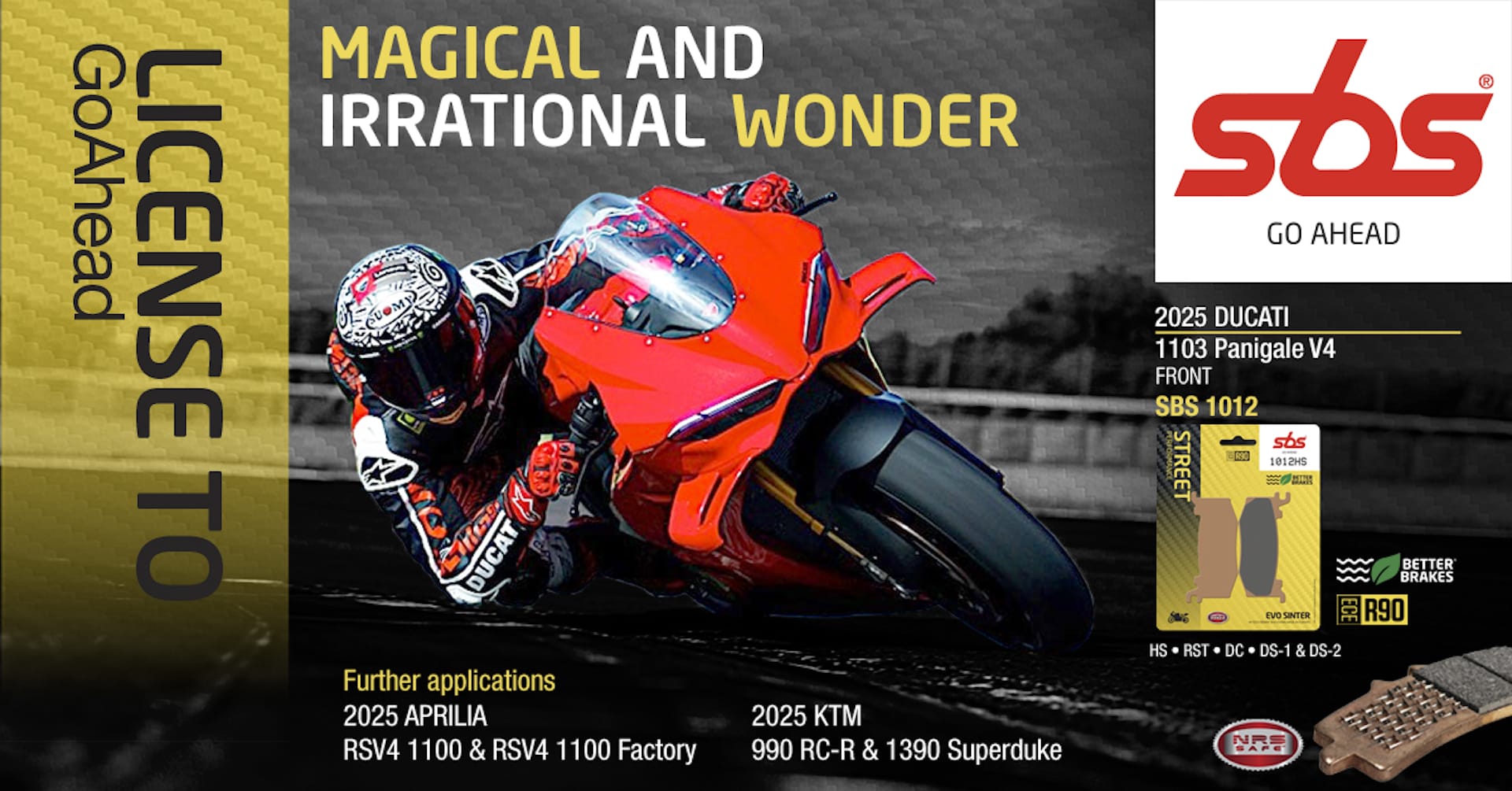 SBS Friction A/S, azienda danese attiva dal 1964 nel settore delle tecnologie frenanti per le due e le quattro ruote, porterà a EICMA 2025 la nuova pastiglia freno SBS 1012 compatibile con le pinze Brembo Hypure, disponibile nelle varianti HS e RST all'anteriore e SBS al posteriore. Indicata sia con i dischi freno in acciaio inossidabile sia con quelli in ghisa, è progettata per garantire un'elevata stabilità termica e un'eccellente sensibilità di frenata, assicurando un'alta modulabilità e un eccellente controllo. Sviluppata nel mondo delle competizioni, la SBS 1012 è perfetta in abbinamento a moto sportive come Aprilia RSV4, KTM Superduke, KTM RC-R e Ducati Panigale V4.