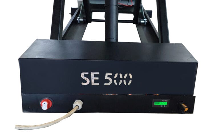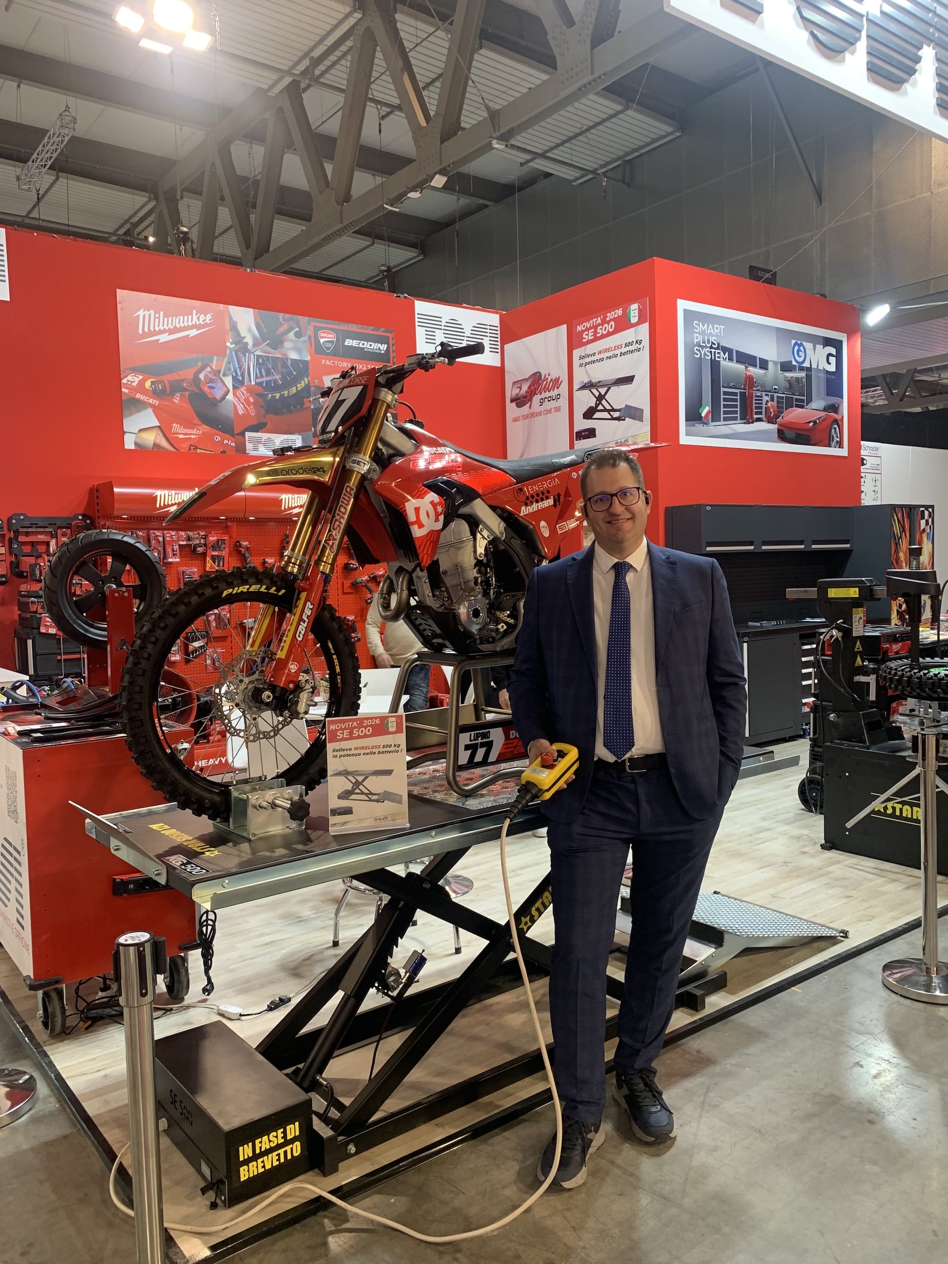 Nella foto di apertura, accanto al nuovo sollevatore SE 500, con la moto Ducati MX2 del team Beddini Racing.