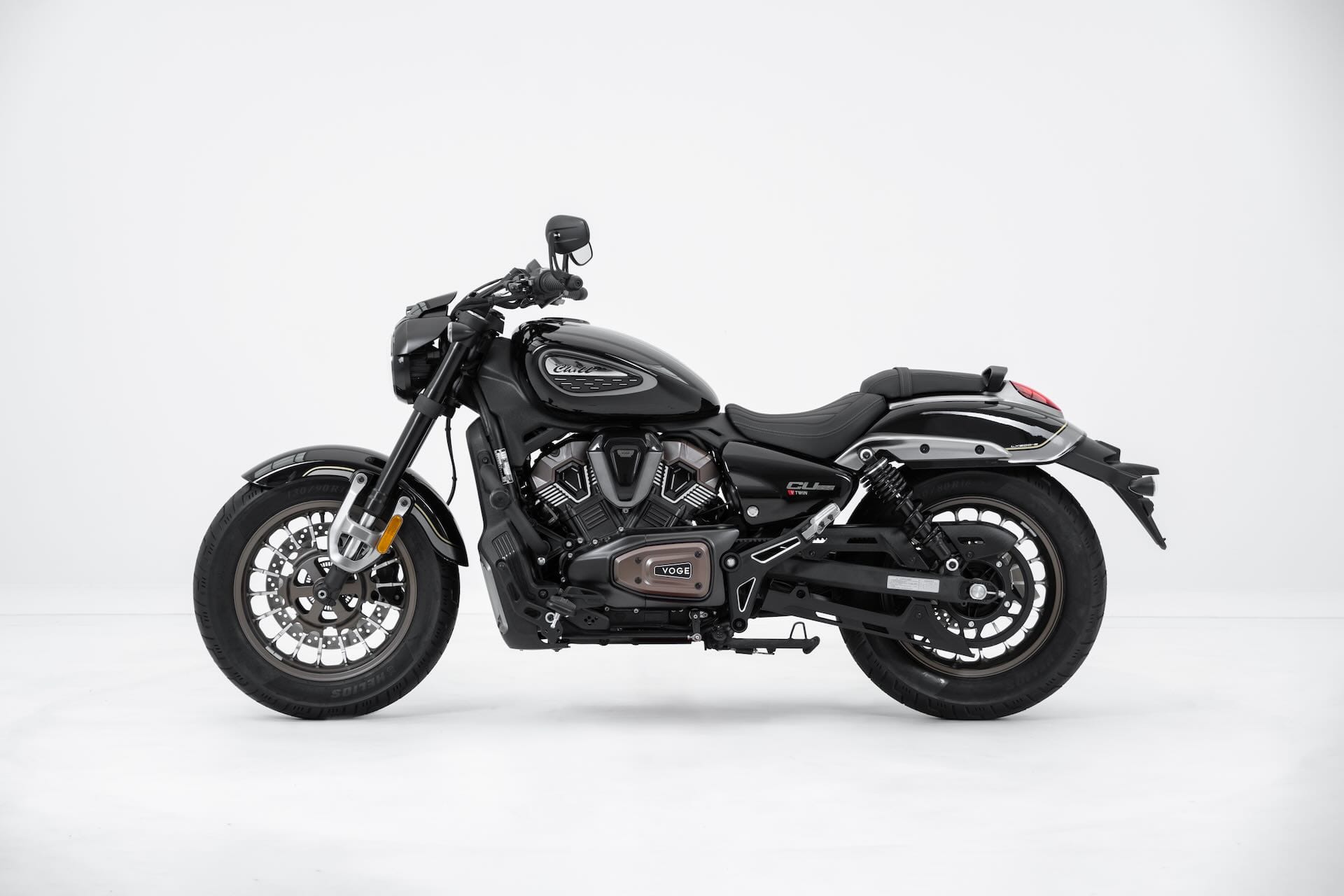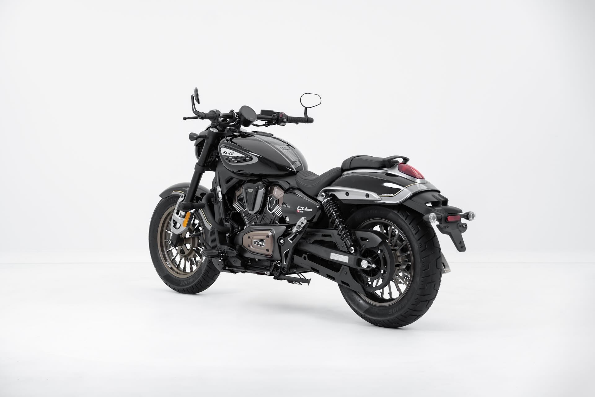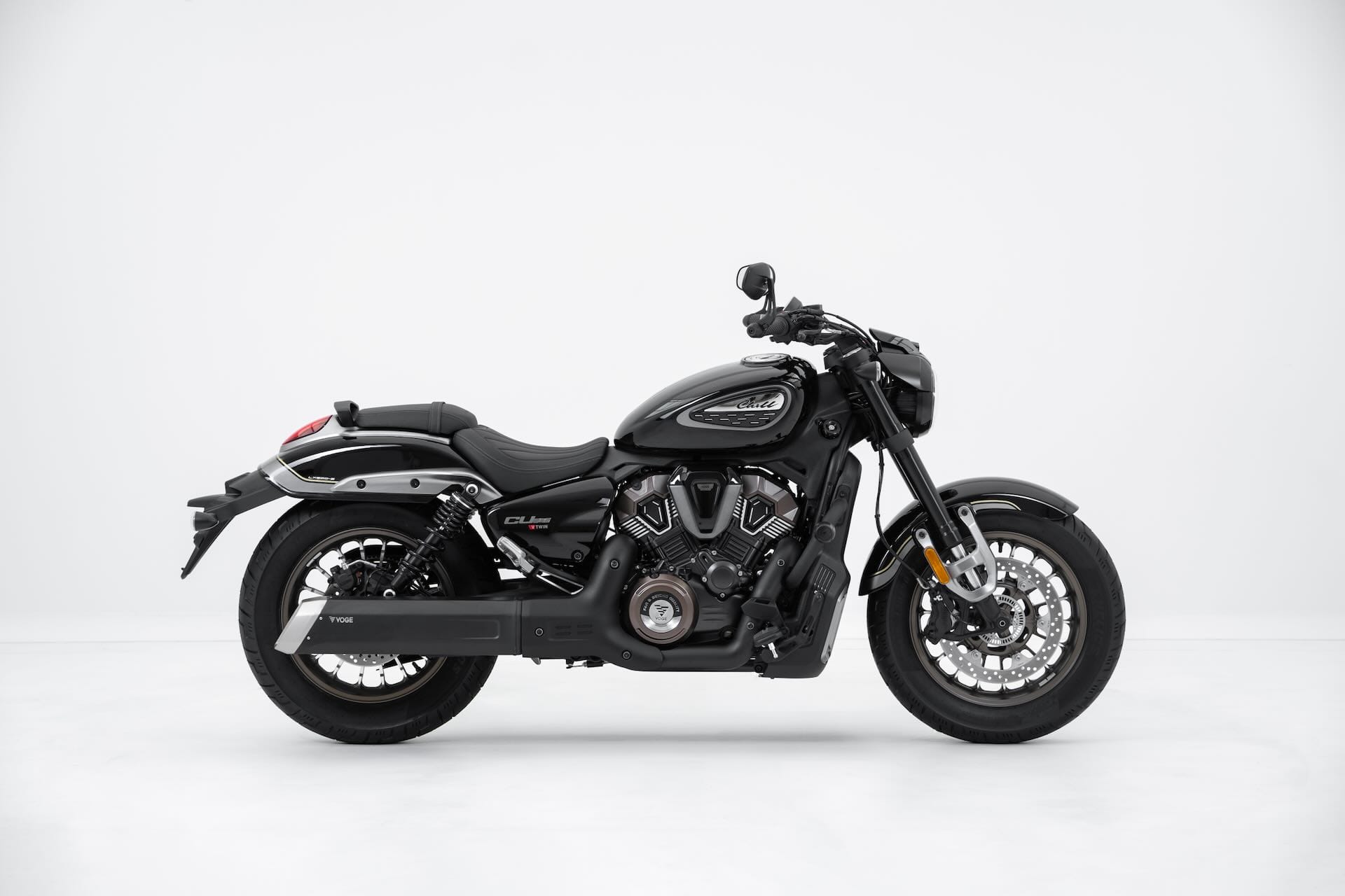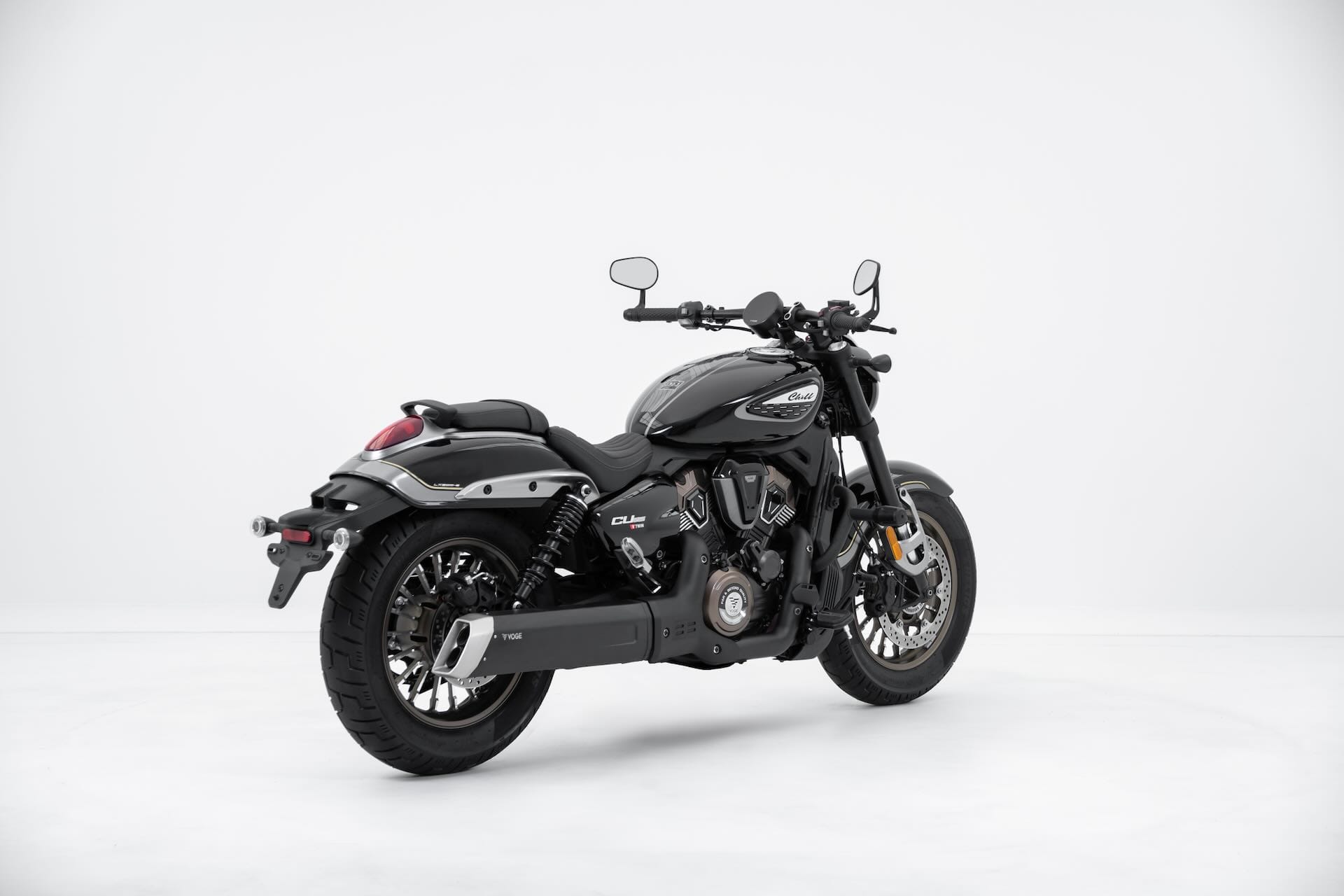 Voge presenta a EICMA 2025 la CU625, la sua prima moto custom, che mescola estetica bobber e dotazioni tecnologiche contemporanee. A caratterizzare la linea sono il manubrio drag bar e gli specchi bar-end, oltre ai dettagli bruniti della meccanica e allo scarico tagliato a fetta di salame. L’equipaggiamento standard comprende luci full LED, controllo di trazione, display TFT circolare e doppia presa USB (tipo A e C), cui si aggiungono i sensori di pressione pneumatici. Il cuore della Voge CU625 è un bicilindrico a V da 578,2 cc raffreddato a liquido, che sviluppa 60,3 CV e 61 Nm. Il cambio è a 6 marce e sono disponibili 2 mappature motore. La trasmissione finale è a cinghia. Il telaio a doppia culla in acciaio è accostato a una forcella a steli rovesciati e ad ammortizzatori posteriori regolabili. Le ruote in lega leggera montano pneumatici tubeless da 130/90-16 all'anteriore e 150/80-16 al posteriore. L'altezza sella è di soli 710 mm e il peso è contenuto in 199 kg, valori che dovrebbero rendere la moto ben gestibile anche nelle manovre a bassa velocità.